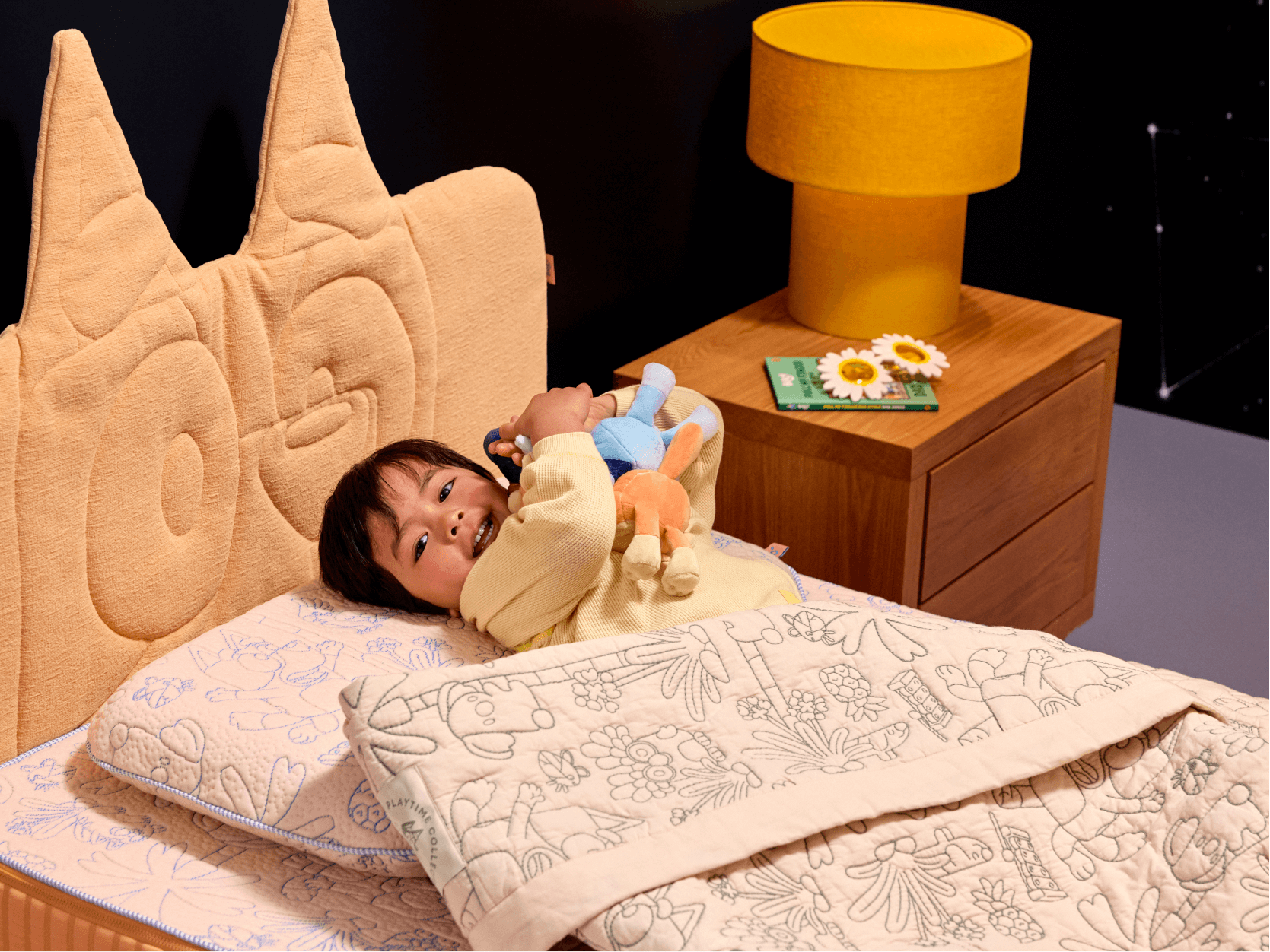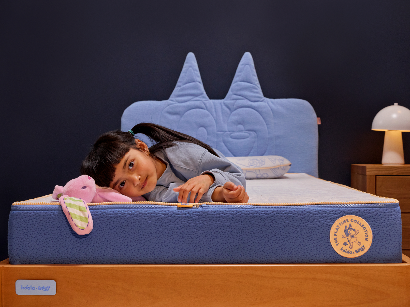 The Snoozytime Bed Base is sturdy for takeoff, with a Bluey-inspired buddy on board.