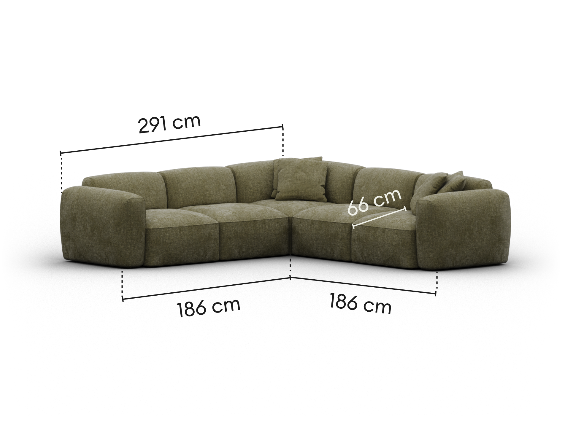Each chaise, sofa and armrest configuration comes with two cushions. A corner configuration comes with two extra cushions.